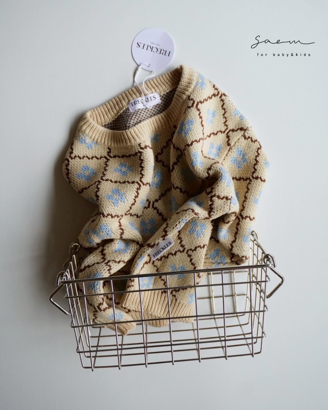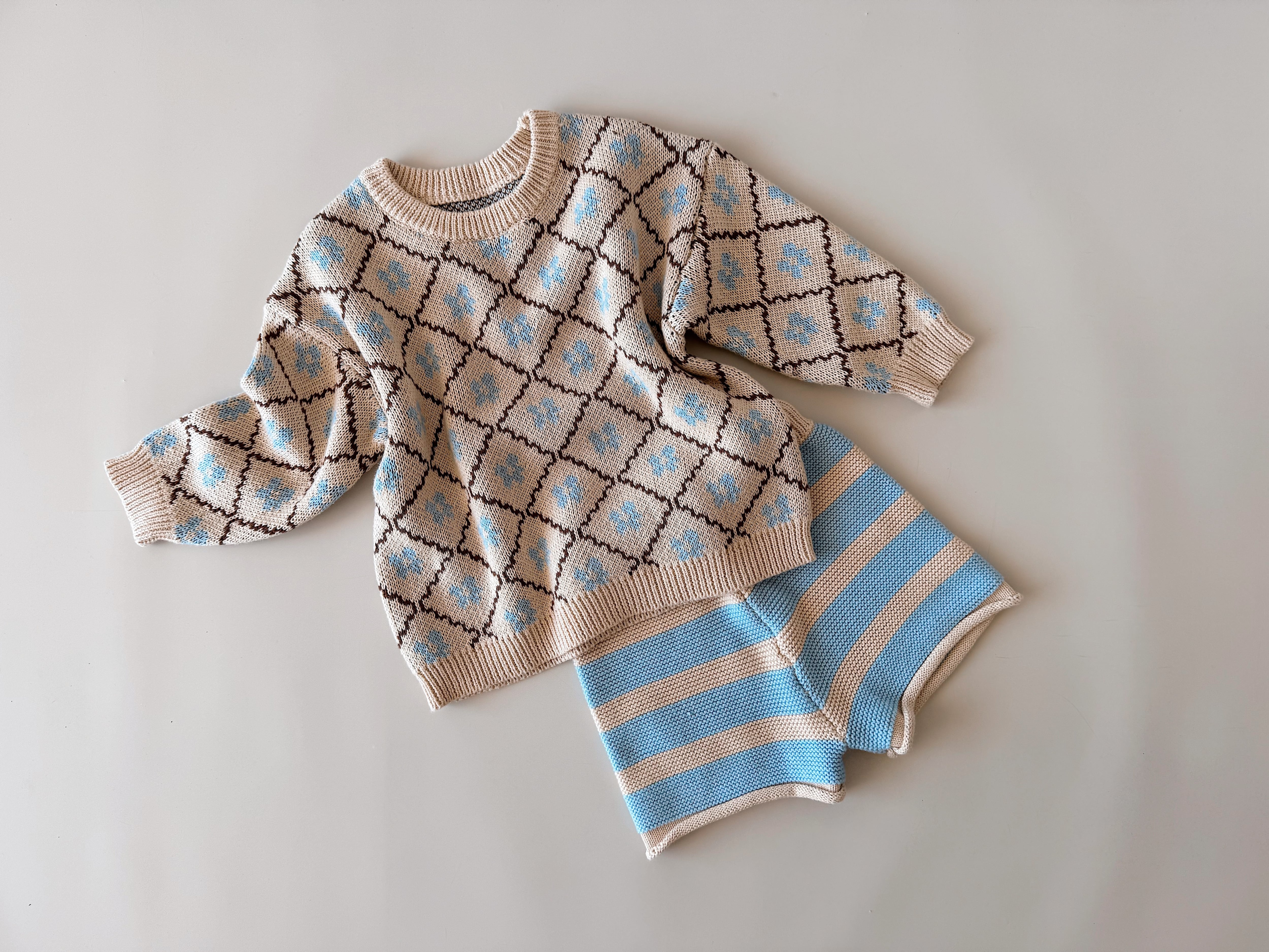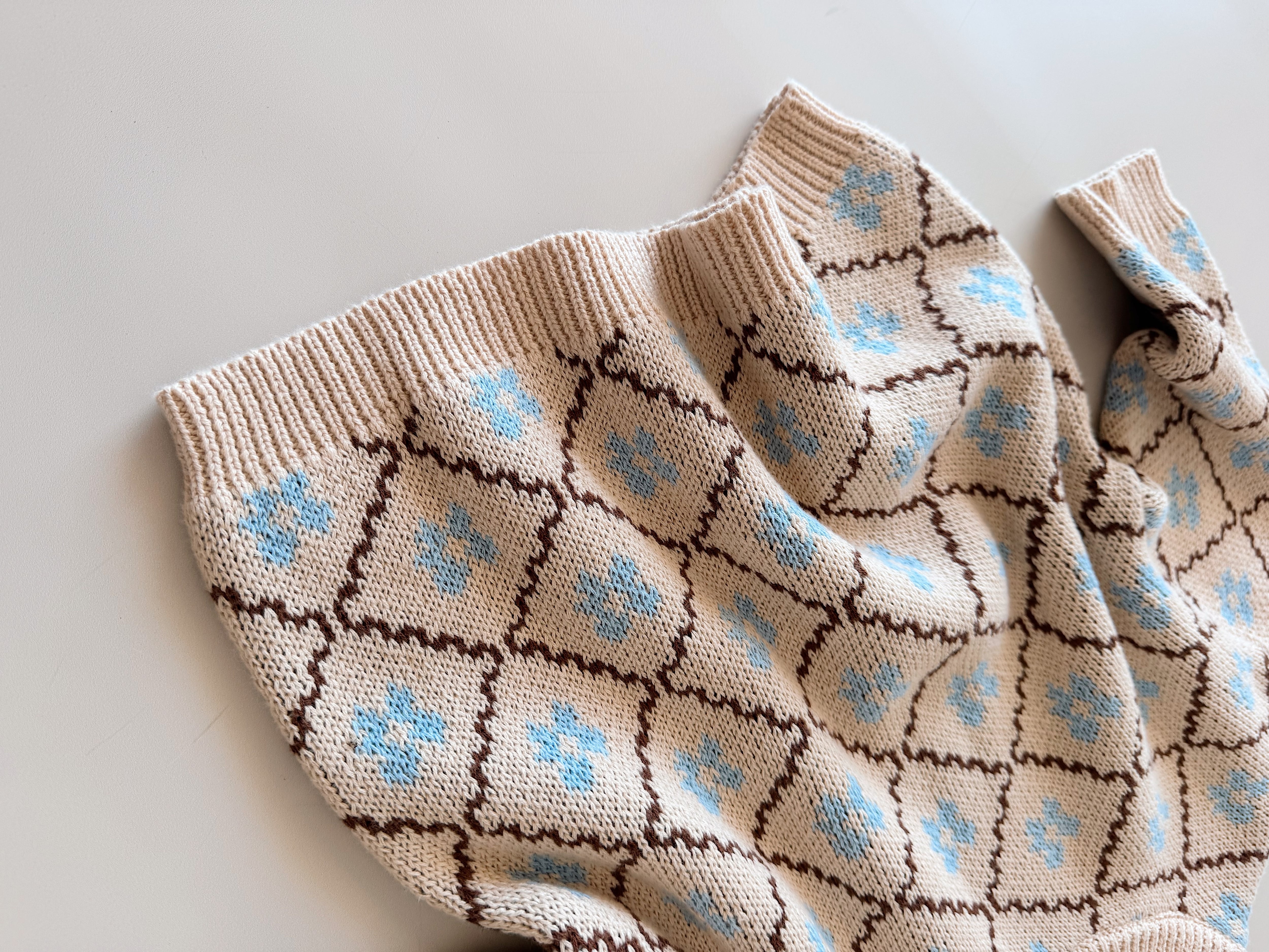 【即納】6-7y/Cotton Knit Jumper Bluebell/Freckles